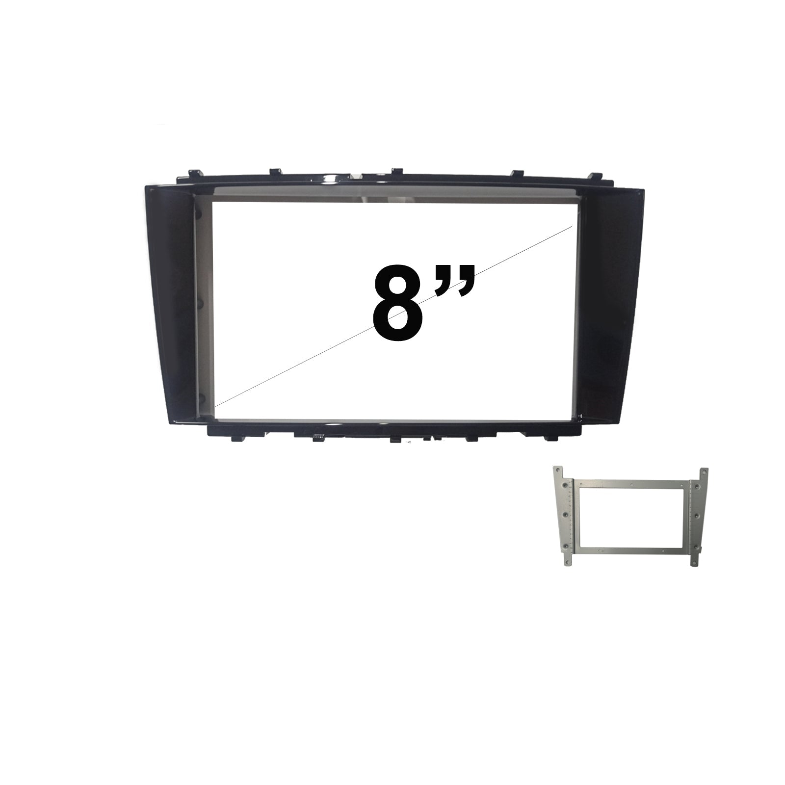 8 Inch FACIA KIT Fascia Panel Plate Dash Surround Trim For Mercedes Benz C-Class 2004-2006 Piano Black